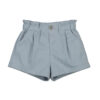 Bermuda infantil en colores Blue Bell y Camel, con ligera elasticidad y cierre práctico; diseño básico y versátil para uso diario.