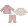 Este pack de tres piezas se caracteriza por su confección cuidada, típica de la marca Mayoral. Cada elemento del conjunto está pensado para ofrecer la máxima libertad de movimiento y un tacto agradable para la piel sensible de las más pequeñas. El color Orquídea añade un toque vibrante y alegre, ideal para cualquier estación.