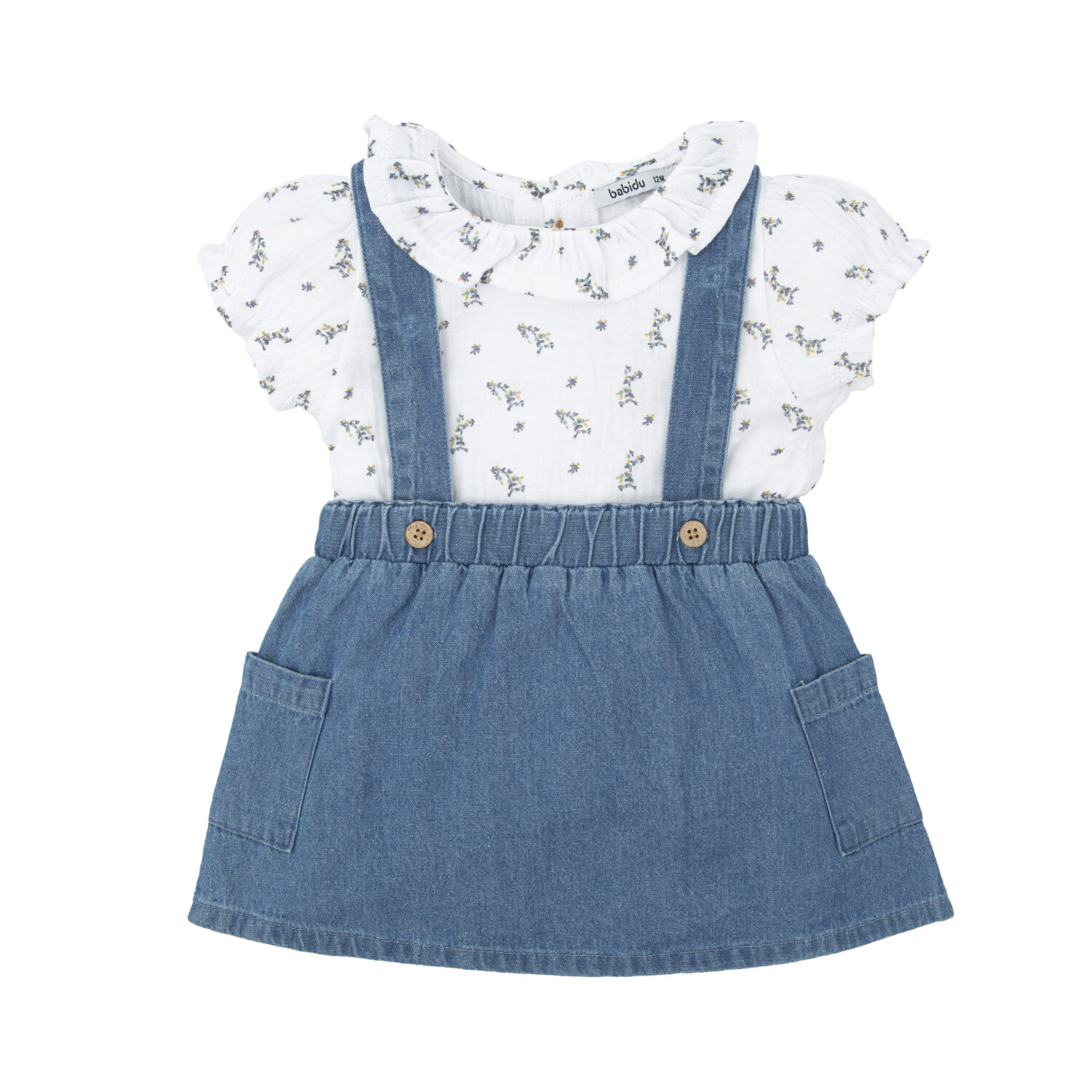 Descubre el encantador conjunto de peto y camisa de manga corta Clavel, la elección perfecta para que tu pequeña luzca elegante y cómoda en cualquier ocasión.