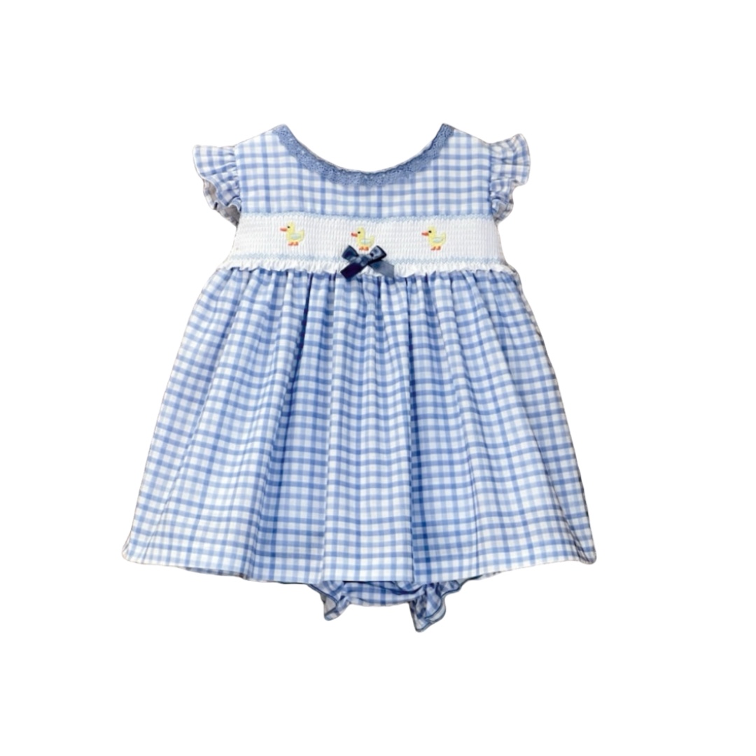 Vestido Cua Cua Blue Vichy con Bordados + Culote